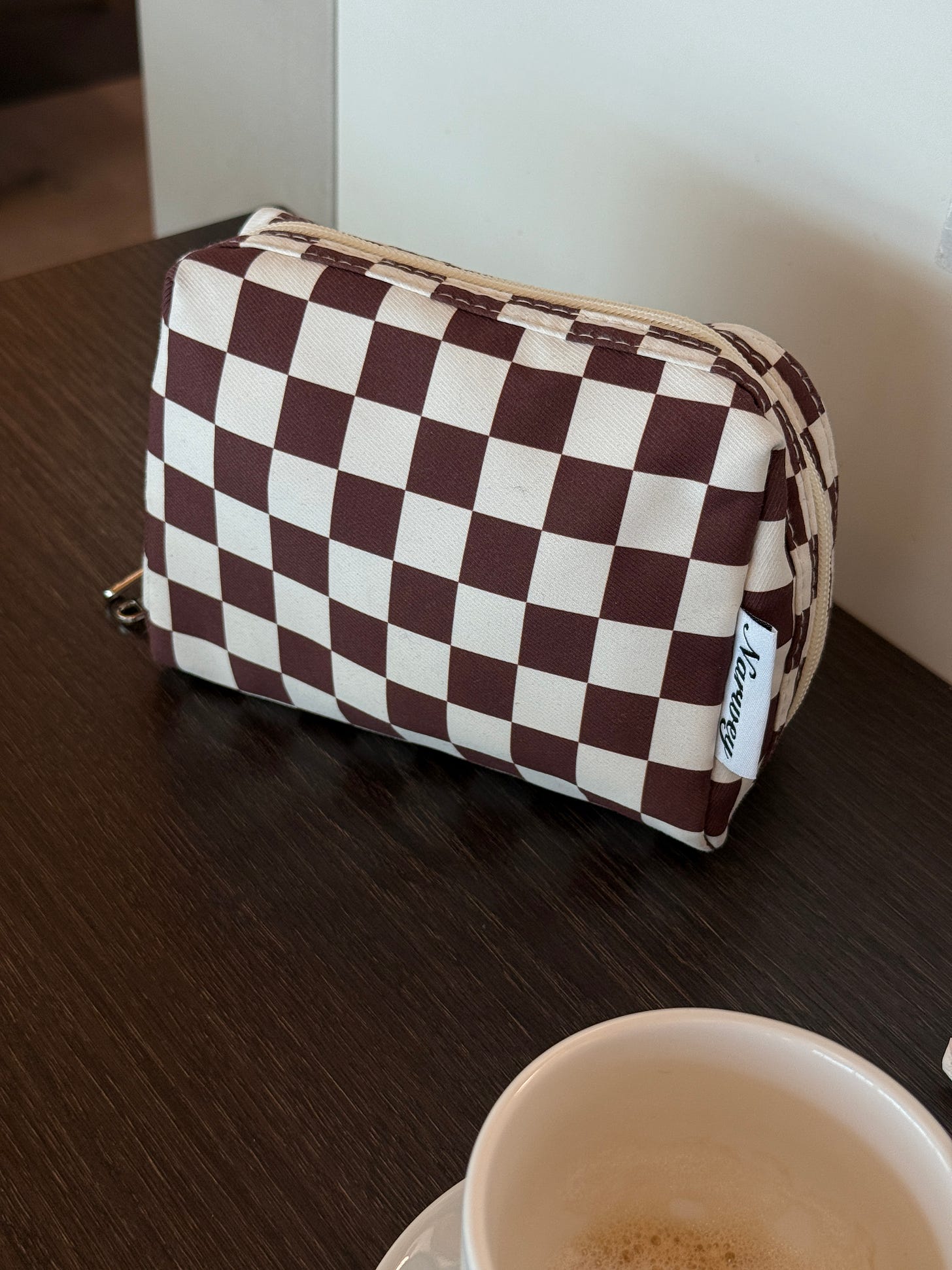 Most of these essentials fit neatly inside a cute little checkered pouch I picked up recently. (I'm a sucker for a checkerboard print and am already considering a second one just for chargers and electronics.)