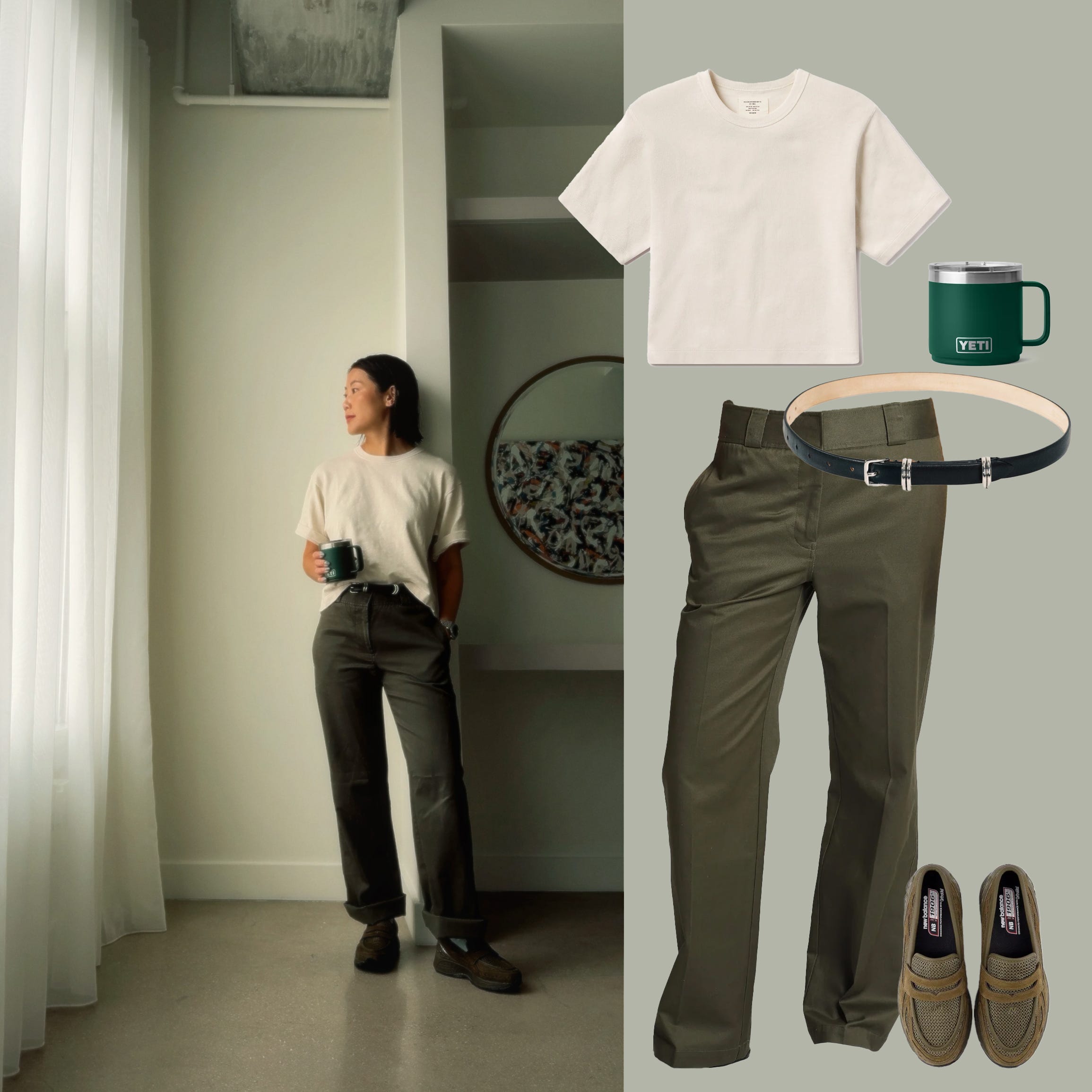 Day 3: A khaki theme, accessorized with what I lovingly call my ugly sneaker-loafers.